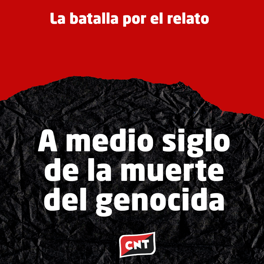 Hoy, 50 años después de la muerte del genocida, imbricamos la memoria histórica con las luchas actuales y continuamos creyendo en la necesidad y viabilidad de un mundo sin clases ni estados. Seguimos apostando por un modelo sindical único y realmente efectivo, basado en la solidaridad y en la acción directa. Reivindicamos como única garantía válida de no repetición la abolición del ejército, de los cuerpos represivos y de la industria militar, así como la salida de España de la OTAN y la expulsión del ejército estadounidense de las bases que entregó Franco. Hoy, como ayer, seguimos teniendo compañeras presas por hacer sindicalismo. Cada vez más evidencias como la crisis de la DANA o la de los incendios forestales corroboran que el apoyo mutuo y la autogestión siguen siendo alternativas autoorganizacionales más fiables que el estado ante situaciones de colapso.
